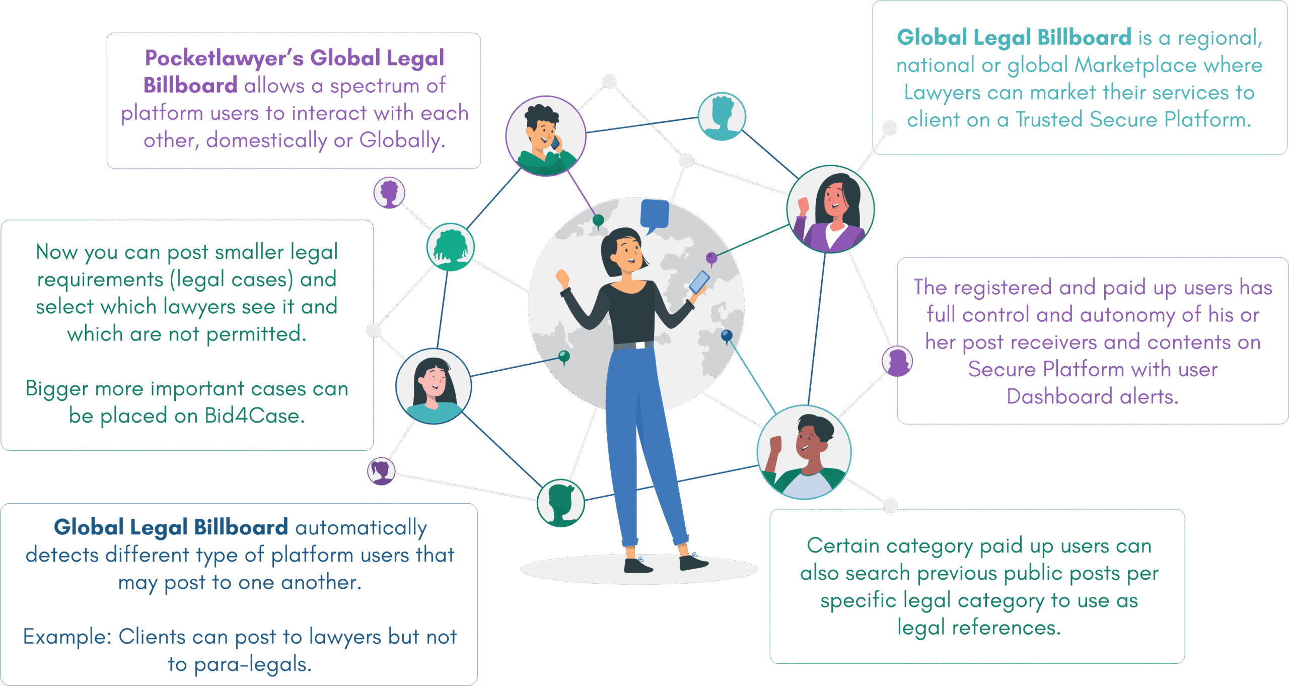 Pocketlawyer’s Global Legal Billboard revolutionizes how legal services are accessed and marketed, fostering domestic and global interactions among various platform users.
